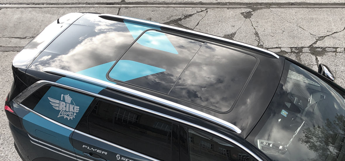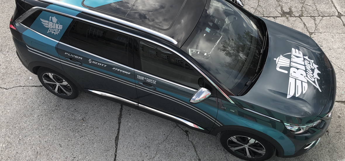 Damit die Bike-Lounge auch auf der Strasse sichtbar wird, haben wir eine dynamische, schnittige Fahrzeugbeschriftung gestaltet. Sie greift die wesentlichen Elemente des Markenauftritts auf und bringt sie wortwörtlich in Bewegung – sichtbar, stilvoll und unverwechselbar!