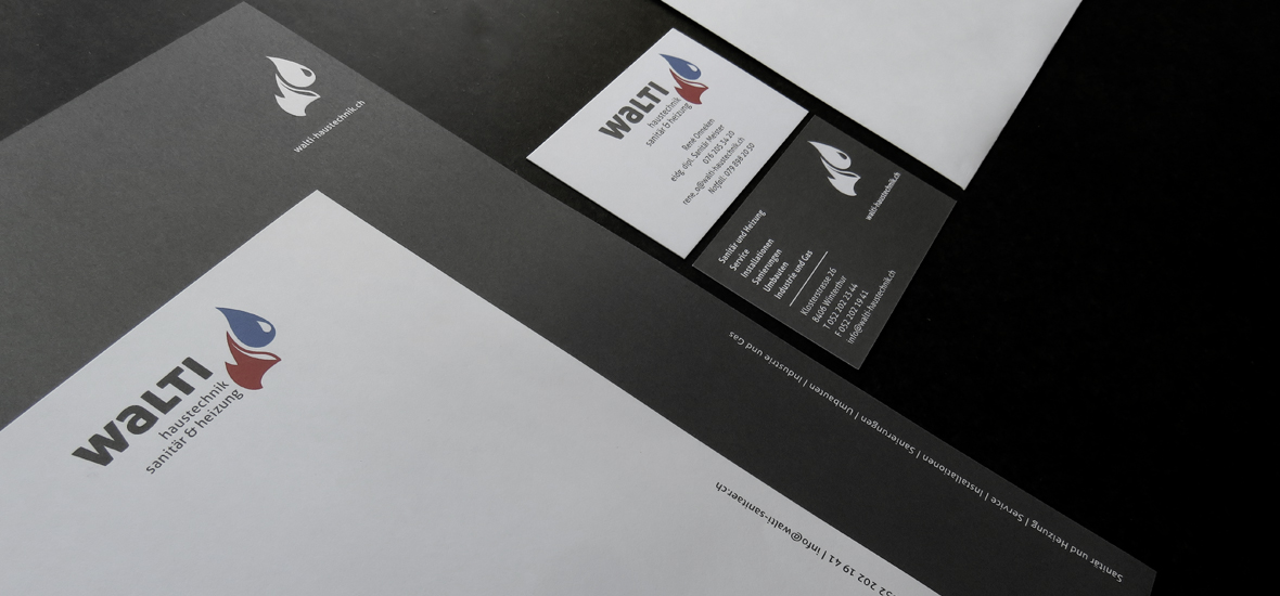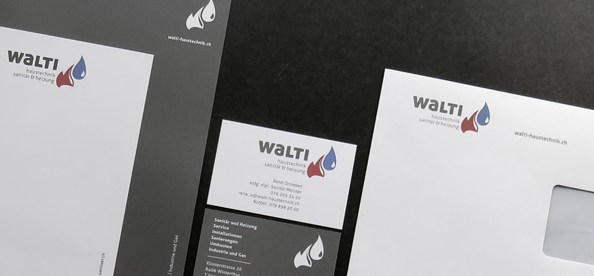 Im Zuge des Generationenwechsels erhielt Walti Haustechnik ein neues Gesicht – modern, klar und selbstbewusst. Das neue Erscheinungsbild fand nicht nur auf Briefpapier und Geschäftsdrucksachen seinen Platz, sondern wurde auch auf die Fahrzeugflotte übertragen. Gestaltung und Umsetzung der Beschriftung? Natürlich von uns – sichtbar stark, vom Papier bis zur Strasse.