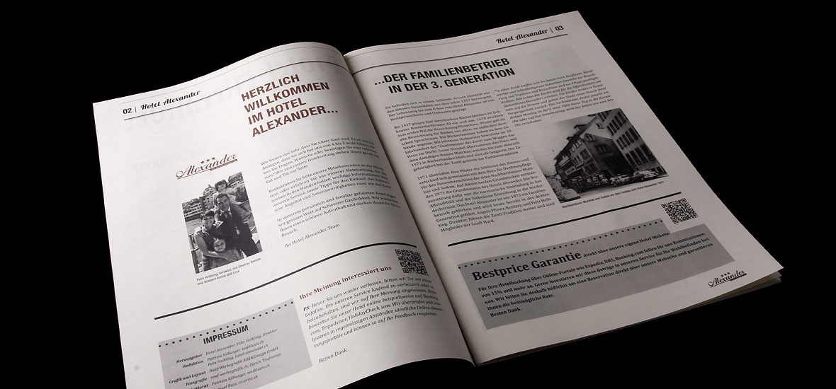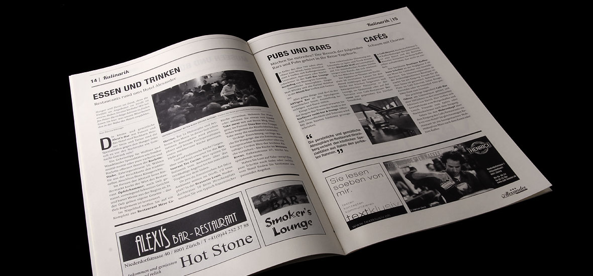 Hotel-Zeitung für das Hotel Alexander in Zürich