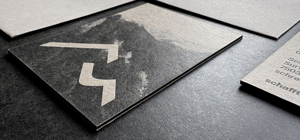 Im Engadin sind die Anforderungen an eine Schreinerei so individuell wie die Kunden selbst – exklusiv, ausgefallen und voller Charakter. Hier entstehen Werte aus Holz, die Bestand haben. Um diese Wertigkeit greifbar zu machen, haben wir eine Visitenkarte konzipiert, die Eindruck hinterlässt: mit einem markanten schwarzen Kern und beidseitig belegtem Naturpapier. Ein echtes Stück Handwerkskunst – spürbar in jeder Faser!