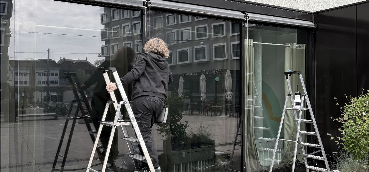 In Zeiten steigender Temperaturen wird der Schutz vor Wärme und UV-Strahlung immer wichtiger. Unsere Sonnenschutzfolien schaffen spürbar angenehmere Räume – ideal für Kinder und Betreuende. Beratung, Bemusterung und Beschichtung? Alles aus einer Hand. Bei der Kita pop e poppa in Schaffhausen wartete eine besondere Herausforderung: Glasflächen mit bis zu 178 cm Breite verlangten nach Know-how und Präzision. Dank einer ausgeklügelten Rolltechnik gelingt die Nassverklebung fast staubfrei – für klare Sicht, cooles Klima und maximale Qualität.